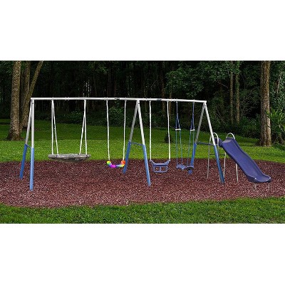 Amazon.com: Swing-N-Slide KLB Sport A-Frame Metal Swing Set w/ Slide (Blue, Green, Orange) 28 $30999 Save 5% with coupon Get it as soon as Fri, Jan 21 FREE Shipping by Amazon Only 14 left in stock - order soon. Backyard Discovery Skyfort II All Cedar Wood Swing Set 557 $2,29900 FREE Shipping by Amazon Ages: 36 months - 10 years